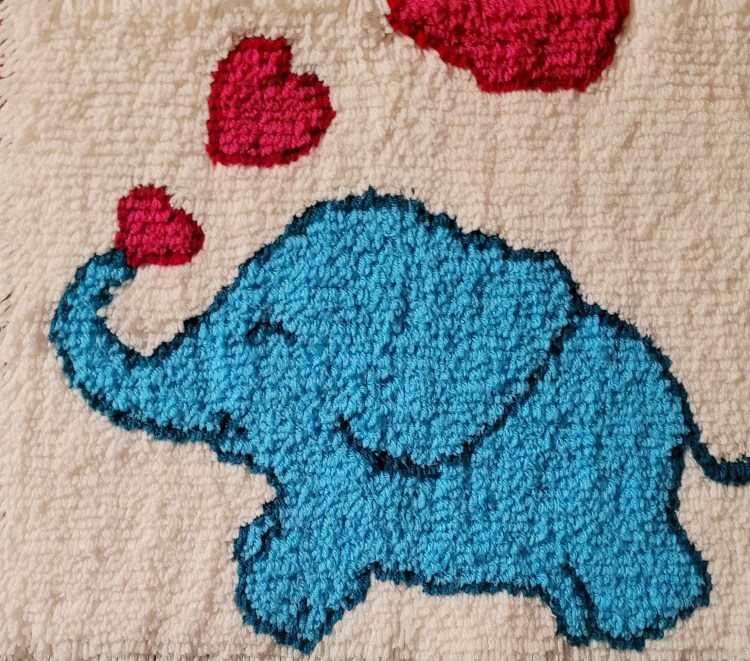 You’re bidding on a latch hook rug, proceeds of which will benefit Sandy Hook Promise.  The rug is approx. 16″x20″.